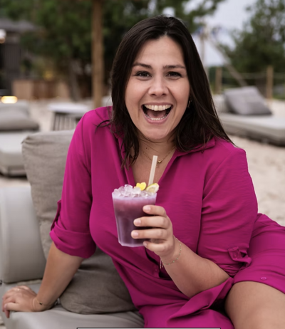 een vrouw die unapologetically zichzelf is, reist, een podcast host, een community bouwde van honderden ondernemers en op deze wereld is om anderen te empoweren.